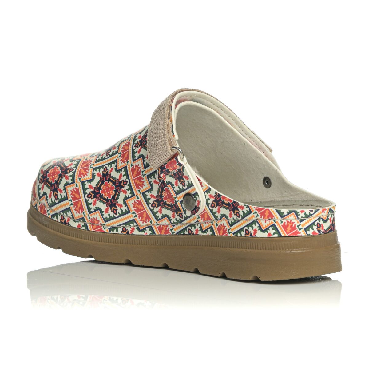 Ξεχωρίστε με αυτά τα γυναικεία σαμπό που συνδυάζουν άνεση και μοναδικό στυλ. Το εντυπωσιακό ethnic μοτίβο σε αποχρώσεις του πορτοκαλί, του πράσινου και του μπλε δημιουργεί ένα δυναμικό, boho αποτέλεσμα που αναβαθμίζει κάθε casual εμφάνιση.