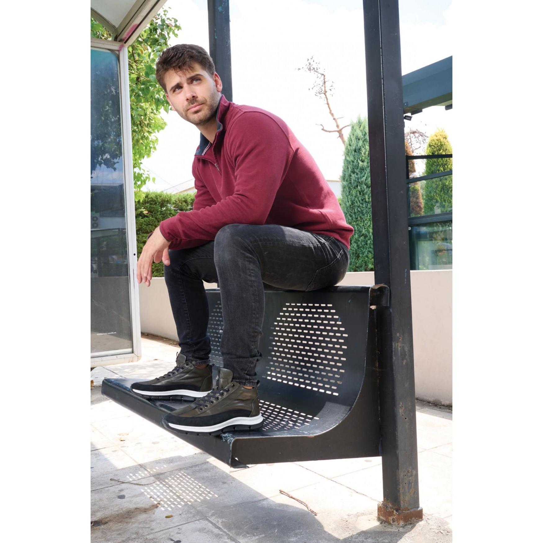 Ανδρικό μποτάκι δερμάτινο με καστόρ λεπτομέρεια και ρυθμιζόμενο με κορδόνι.