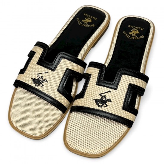 Γυναικείες Παντόφλες της εταιρίας BEVERLY HILLS POLO CLUB με κωδικό BHW619005-MINA CVS. Κατασκευασμένο από εξαιρετικής ποιότητας ύφασμα με eco-leather επένδυση. Διαθέτει μαξιλαρένιο eco leather πάτο και αντιολισθητική σόλα από λάστιχο. Διατίθεται σε Μαύρο με Μπεζ.