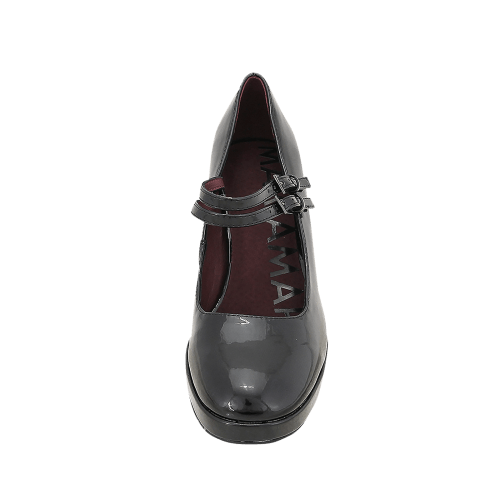 Η γυναικεία γόβα Friuli Mariamare σε στυλ Mary Jane είναι σχεδιασμένη από μαύρο λουστρίνι και ξεχωρίζει χάρη στα δύο λουράκια της στο πάνω μέρος του ποδιού με κλείσιμο με αγκράφα για επιπλέον στήριξη. Διαθέτει άνετο τετράγωνο τακούνι και αμυγδαλωτά δάχτυλα. Ένα ιδανικό στυλ για να προσθέσετε μια πινελιά προσωπικότητας στην εμφάνισή σας.