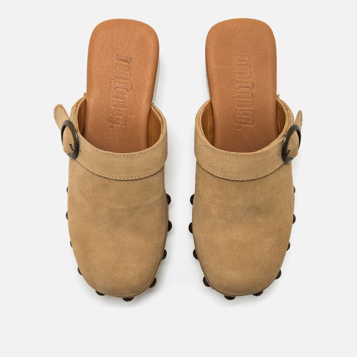 Γυναικεία σαμπό σε χρώμα άμμου, μοντέλο Elois από την Mtng. Σχεδιασμένα από δέρμα, ενσωματώνουν λουράκι στο πάνω μέρος με ρυθμιζόμενη στρογγυλή αγκράφα που παρέχει στήριξη και διακοσμητική λεπτομέρεια. Η πλατφόρμα με εφέ ξύλου και τα πλαϊνά καρφιά ενισχύουν τον boho χαρακτήρα τους και προσθέτουν ύψος χωρίς να θυσιάζουν τη σταθερότητα. Εξοπλισμένα με πάτους με τεχνολογία Comfort, που βελτιώνουν την άνεση σε κάθε βήμα. Κατασκευασμένα από δέρμα που προέρχεται από κατασκευαστές εγκεκριμένους από το πρωτόκολλο «Leather Working Group», όπου αξιολογείται η περιβαλλοντική συμμόρφωση και η απόδοση, προωθώντας βιώσιμες περιβαλλοντικές επιχειρηματικές πρακτικές στον κλάδο του δέρματος.