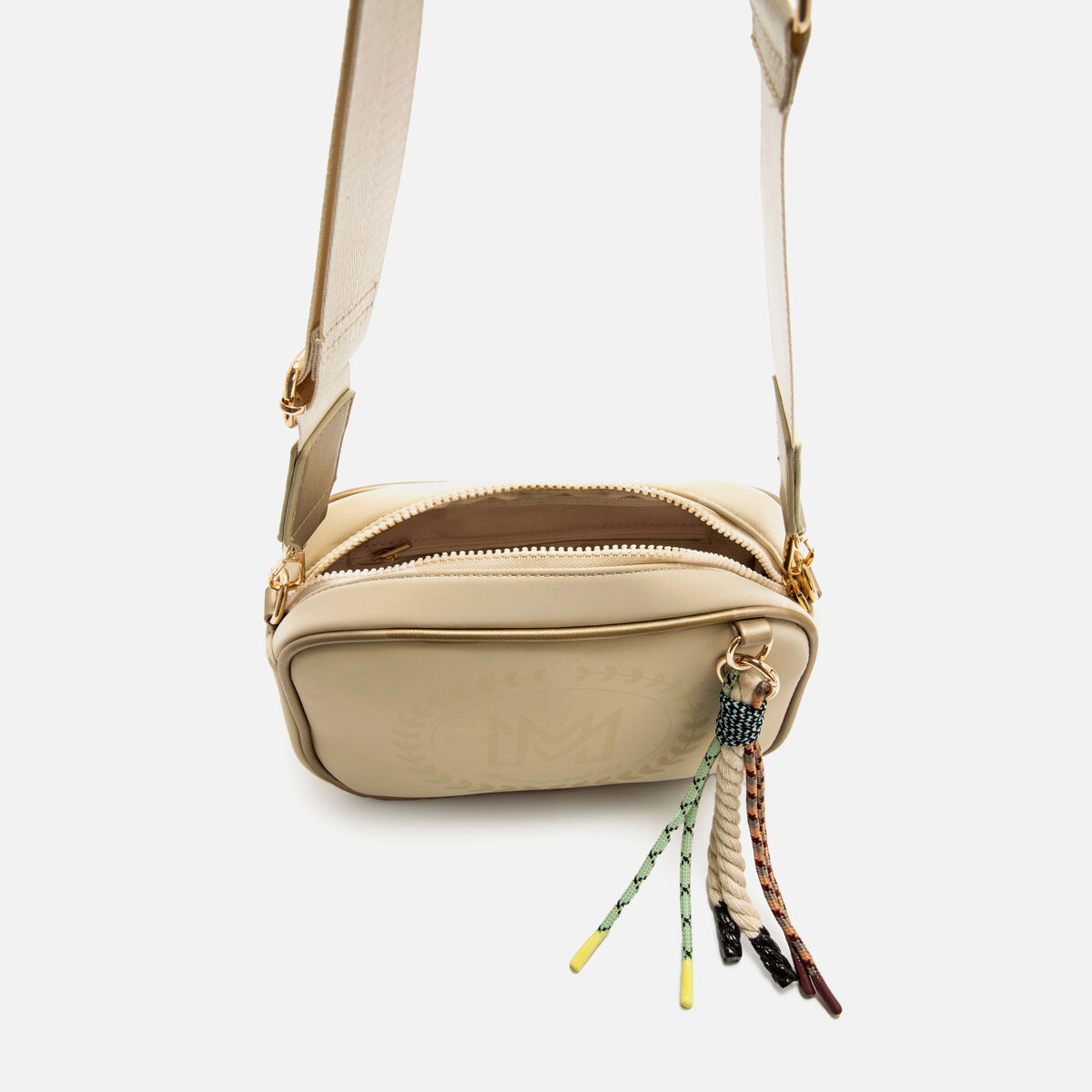 Γυναικεία τσάντα χιαστί από την Mtng, μοντέλο Nacar σε καστανό μπεζ χρώμα με συμπαγή και μοντέρνο σχεδιασμό. Κατασκευασμένη από μαλακά υλικά με δίχρωμο φινίρισμα, που συνδυάζει ανοιχτό μπεζ και καμηλό πάνελ. Διαθέτει φαρδύ ρυθμιζόμενο λουράκι σε υπόλευκο χρώμα, με φερμουάρ σε αντίθεση με το πράσινο της μέντας και κλείσιμο με φερμουάρ στο πάνω μέρος. Το λογότυπο της Mtng εμφανίζεται σε μαύρη μπροστινή πλάκα. Λειτουργικό εσωτερικό με μπροστινή τσέπη και πλαϊνό φερμουάρ. Μια άνετη, ελαφριά και ευέλικτη τσάντα, ιδανική για ένα casual στυλ με μια μοντέρνα πινελιά.